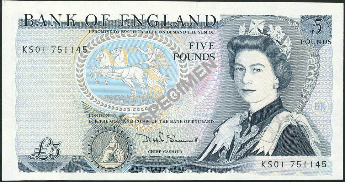 Bank of England, £1 (2), Page (Z) and Somerset, green, £5 (5), Page (2), Somerset (2), KS01,RA01, and Gill, RD01, blue
