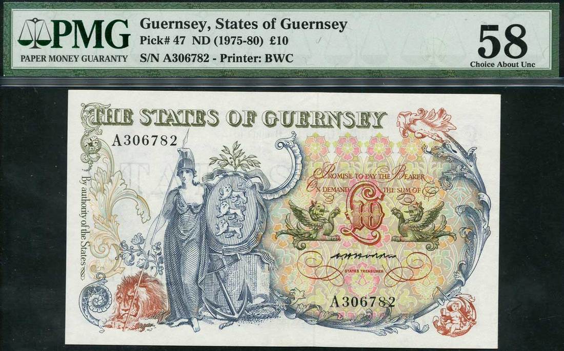 (Banknote Yearbook GU51, Pick 47), in PMG holder number 58, choice about uncirculated