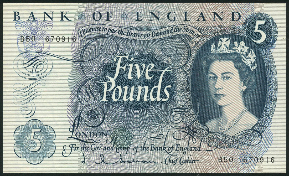 Bank of England, J.Q.Hollom, £5, 1963, prefixes B50 (2), J82, blue, J.S.Forde, 10/-, 1967, prefix A67N, £1, 1967, prefixes R89L, K42Z, P.S Beale, £1, 1950, prefixes S54C, U29C, X15C, Z72C, Z85C, C84J, C84J, B64J, green