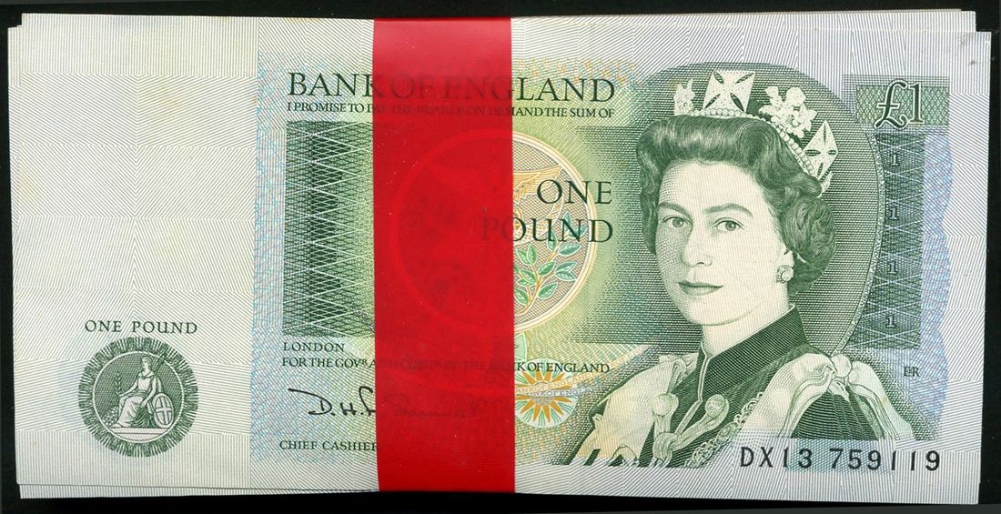 Bank of England, D.H.F.Somerset, £1 (100), ND (1981), serial number DX13 759119-759220, green, Elizabeth II at right, caduceus at centre