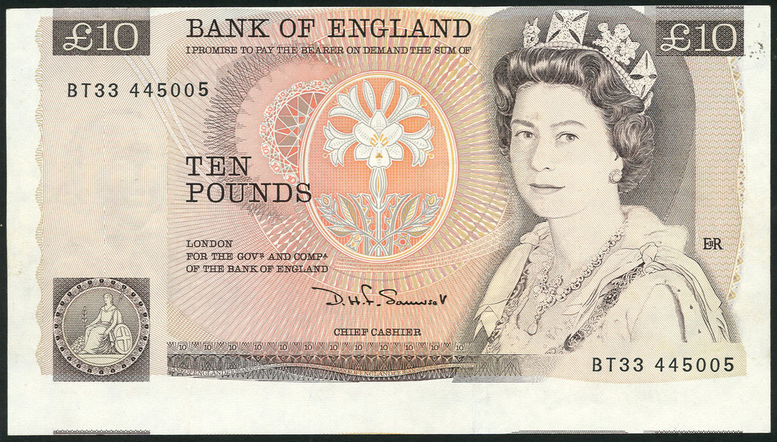 Bank of England, D.H.F.Somerset, £10, ND (1984), prefix BT33, brown, Elizabeth II at right