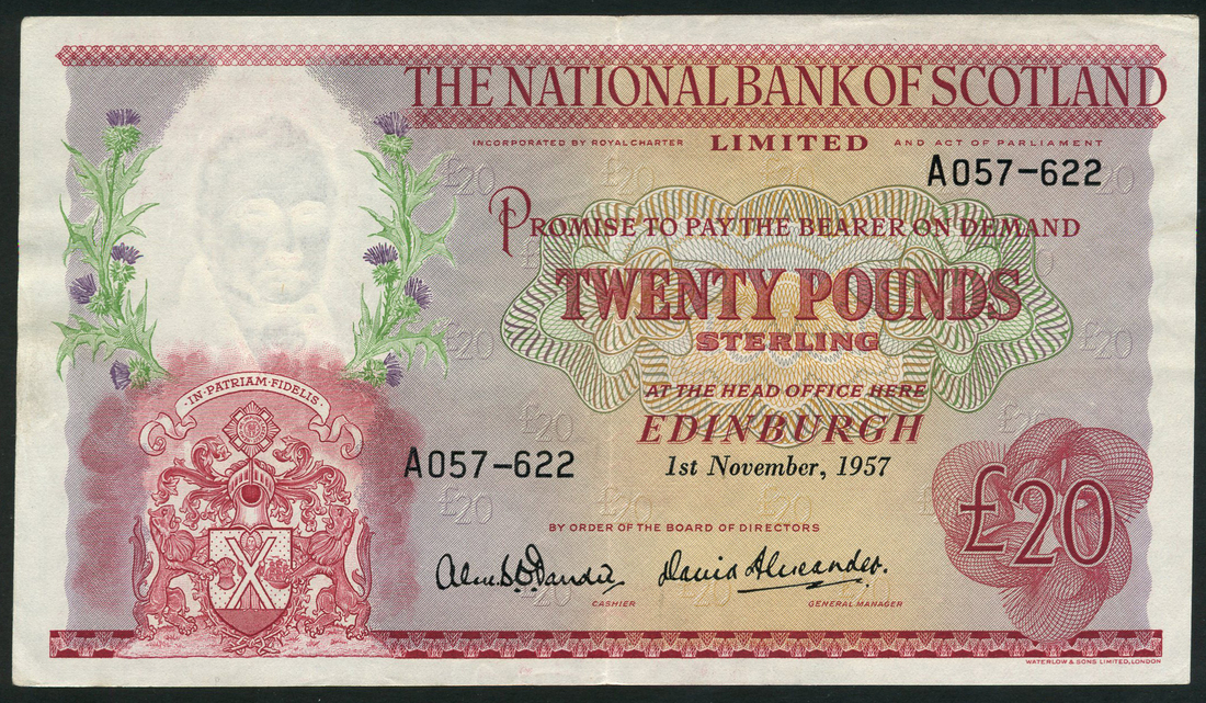 National Commercial Bank of Scotland Limited, archival photographs comprising, proposed design for £1, manuscript date 3.9.58, differs slightly from issued note, three proposed obverse designs for £5, two with manuscript date 7.7.61, two proposed reverse designs differing slightly from issued note, manuscript date 7.7.61, two designs for the reverse of £10, manuscript date 6/6/66 and 12/7/66, slightly different from issued note, together with a further 5 designs for the reverse of £1, manuscript date 1967, and one Royal Bank of Scotland design for £5