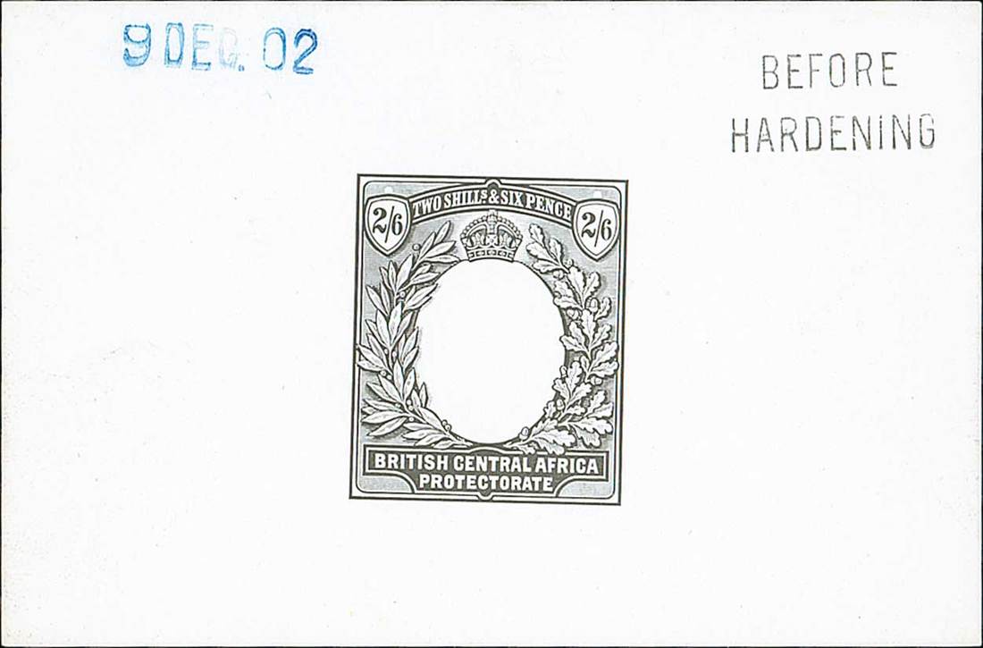 2/6d. die proof of frame marked "before hardening" at upper right and dated "9 dec. 02". Fine. Photo