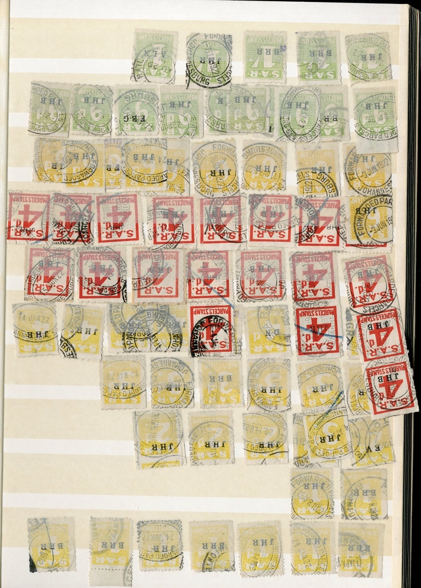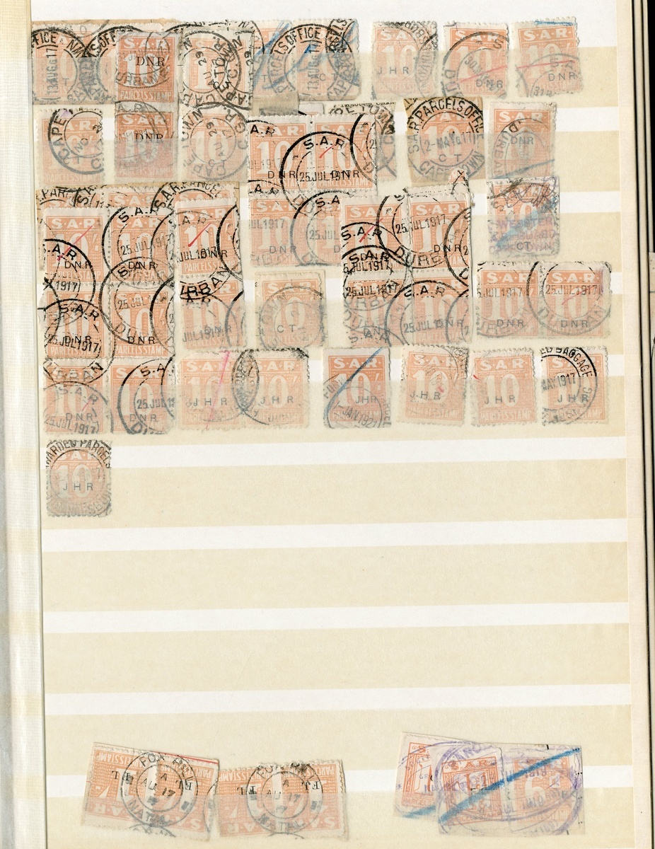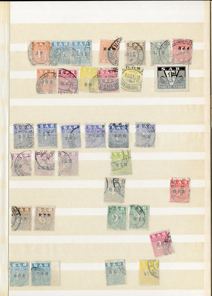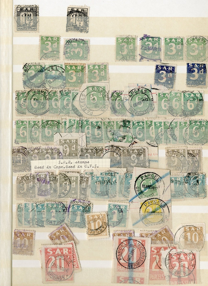 Collection (100's) of South African provinces and surrounding territories, including 1909 Natal Government Railways used to 20/-, Rhodesia Railways 1942-47 1d. orange, mint and used, Beira and masholand 1d. red used, Central South African Railways 1902 1d. to 1/- used, and 1909 1d. to 20/- set used, South African Railways 1909 set to 20/- including pair imperforate between Stamp and Margin, and large blocks used, various staion codes etc. Duplication in places although careful sorting sure to reward, a most interesting collection.