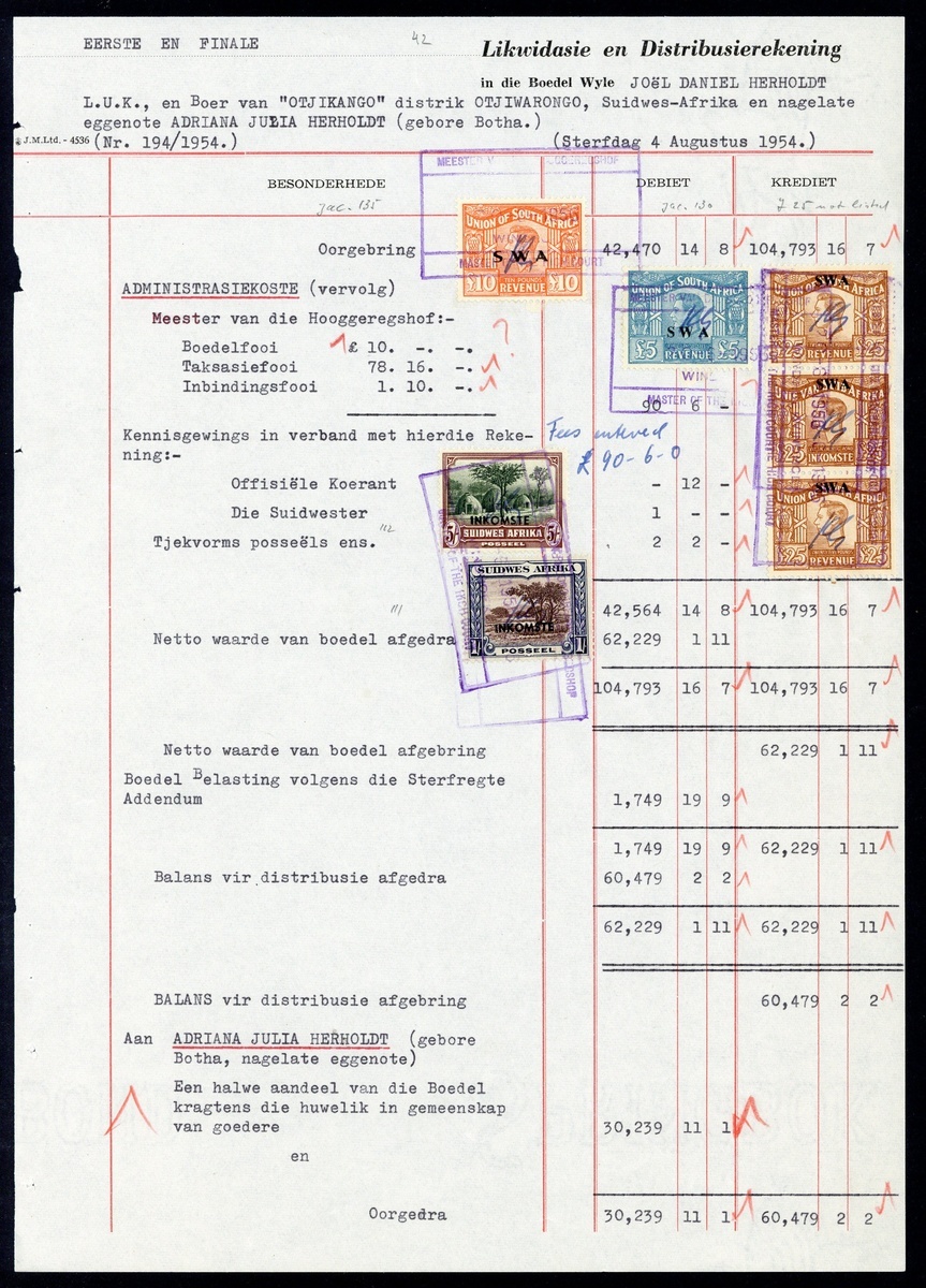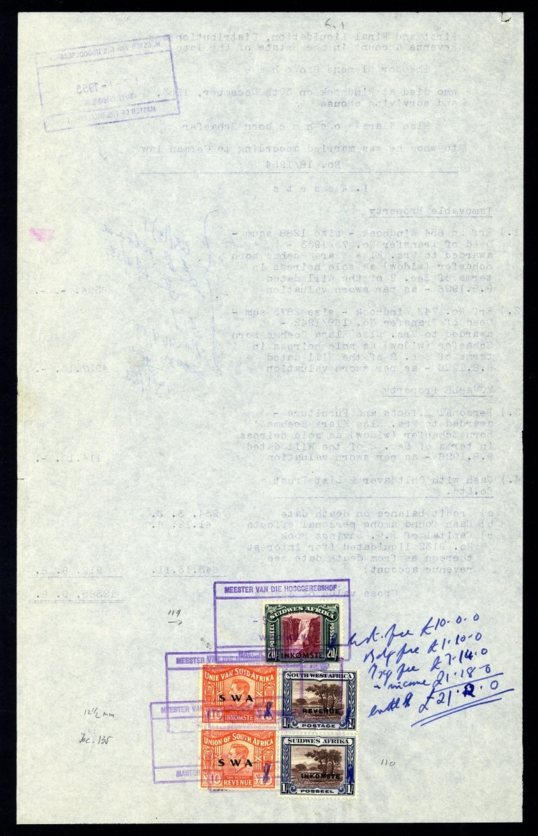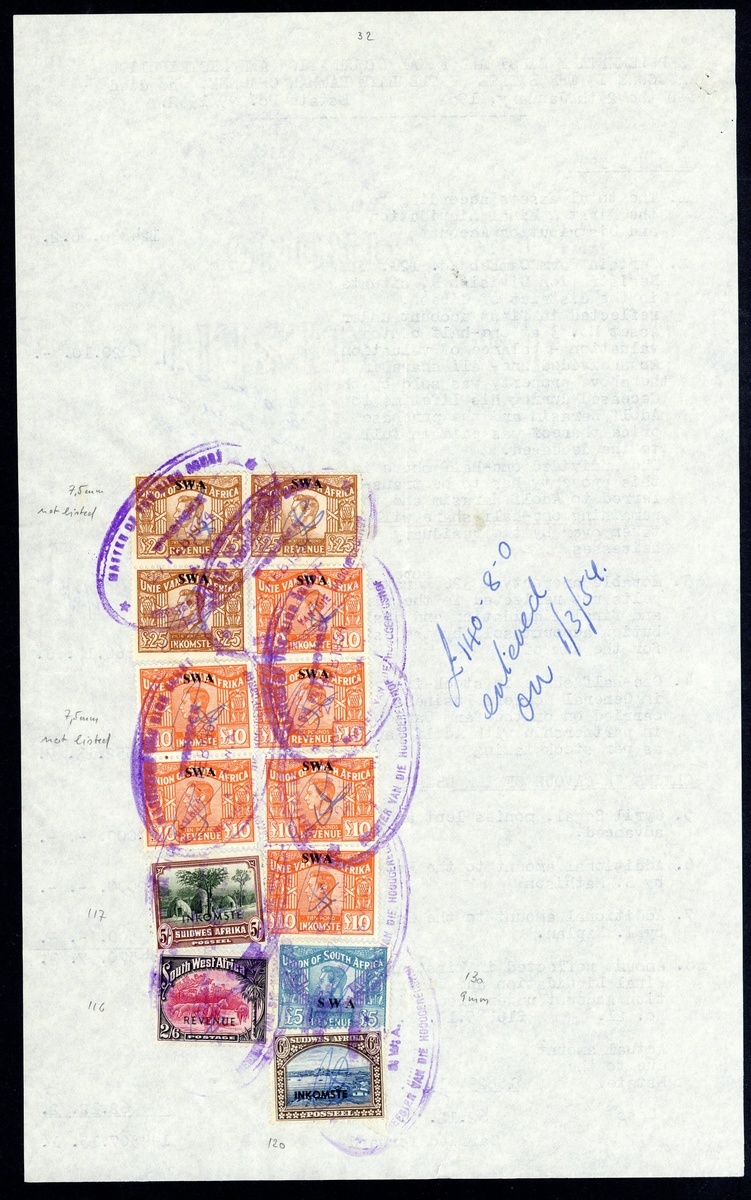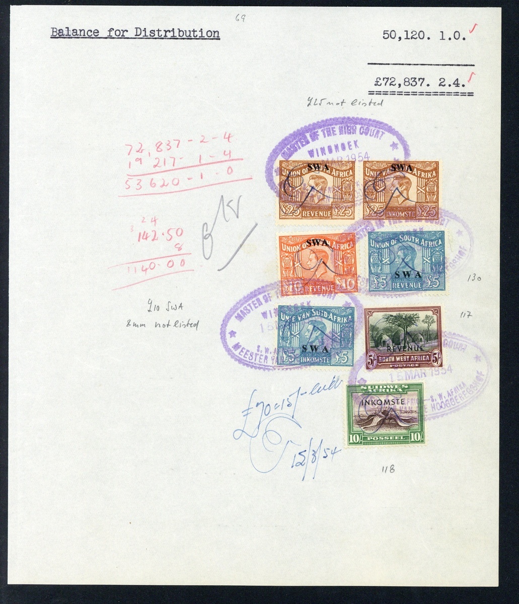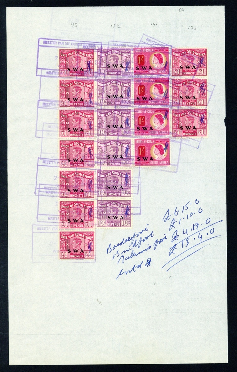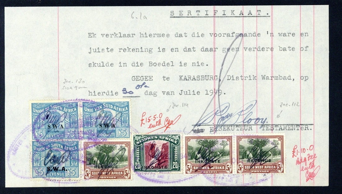 Jacobson "Series 6" South Africa KGVI Unilingual revenue issue overprinted "S W A"