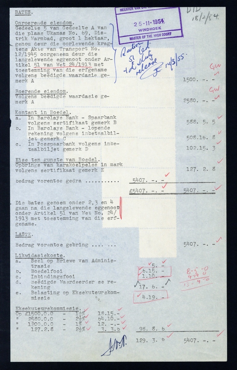 Group of documents (8) variously franked, including £25 brown (11), £10 orange (13), £5 blue (8), showing the various overprint types and settings, a range of cancellations and occasional bi-lingual pairs. A fine and interesting lot.