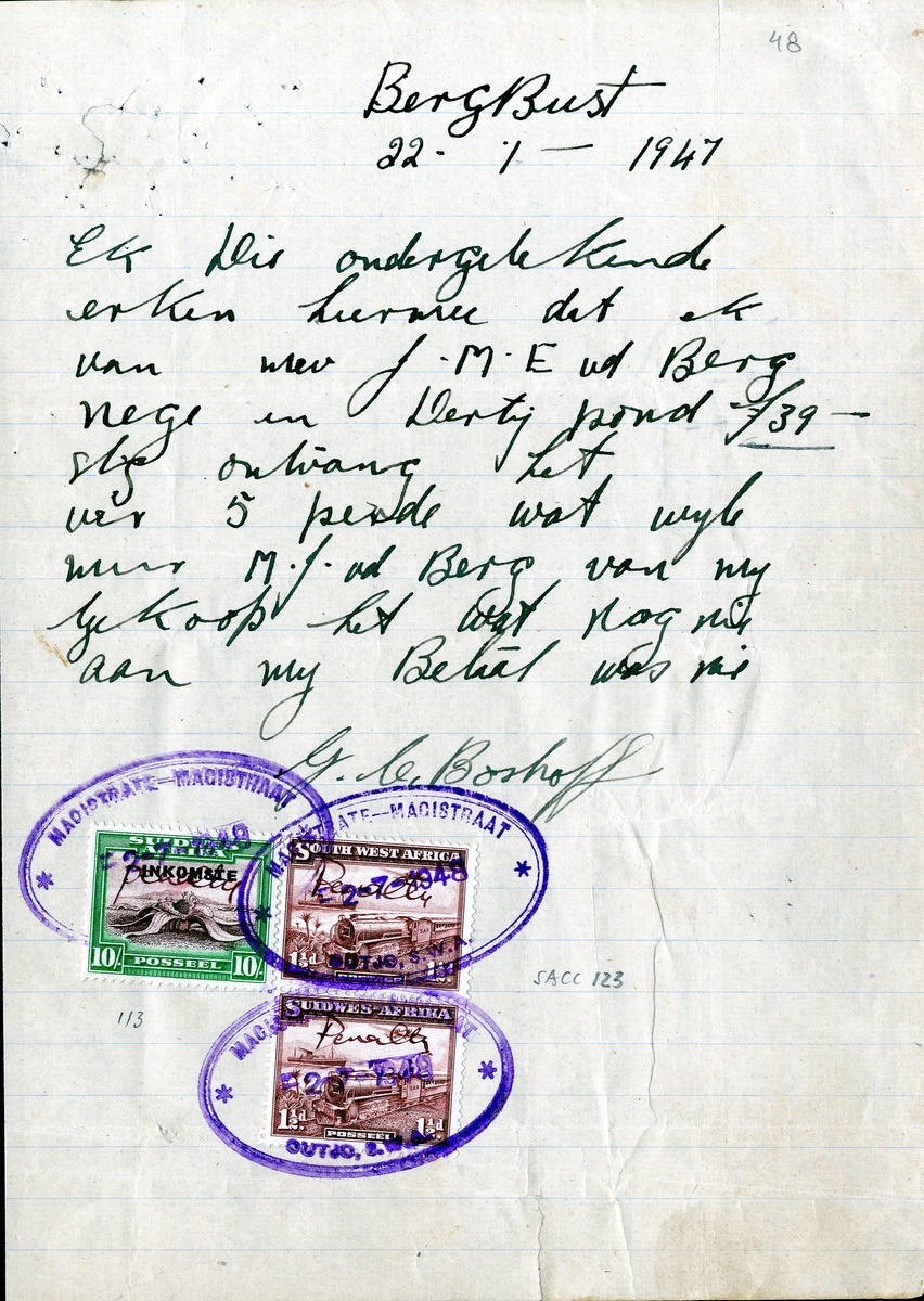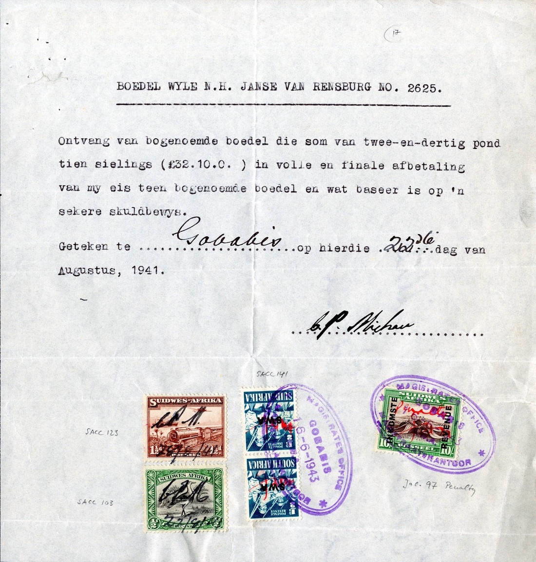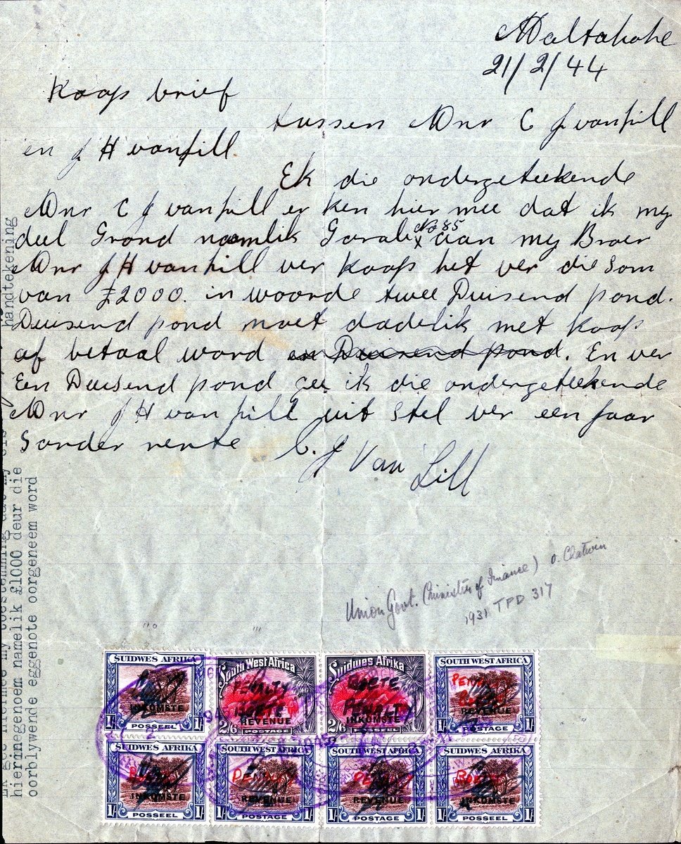 Collection of document pages (18) bearing various revenue types, values from 6d. to 10/-, including a number of interesting combination usages with fiscally used postage, attractive multiple frankings, ornate headed papers etc. A scarce group.