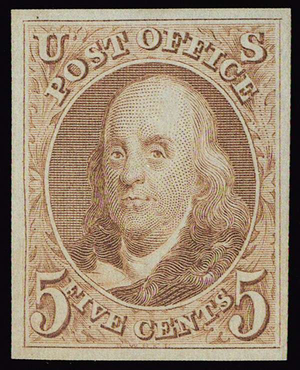 #3, 5c Red brown reproduction, without gum as issued, nicely-centered within large balanced margins, rich brown shade, very fine, with 2019 P.S.E. certificate.
