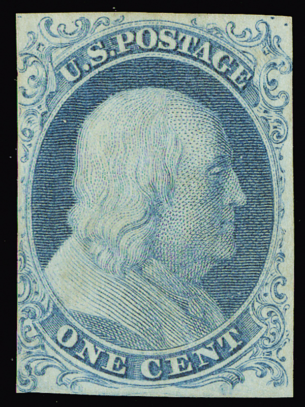 #5A, 1c Blue, Ty. Ib, position 8R1E, margins clear at top and right, into design at left, used with cancel removed to appear unused, bright color, an affordable example of this scarce stamp, fine appearance, with 1981 APEX certificate.