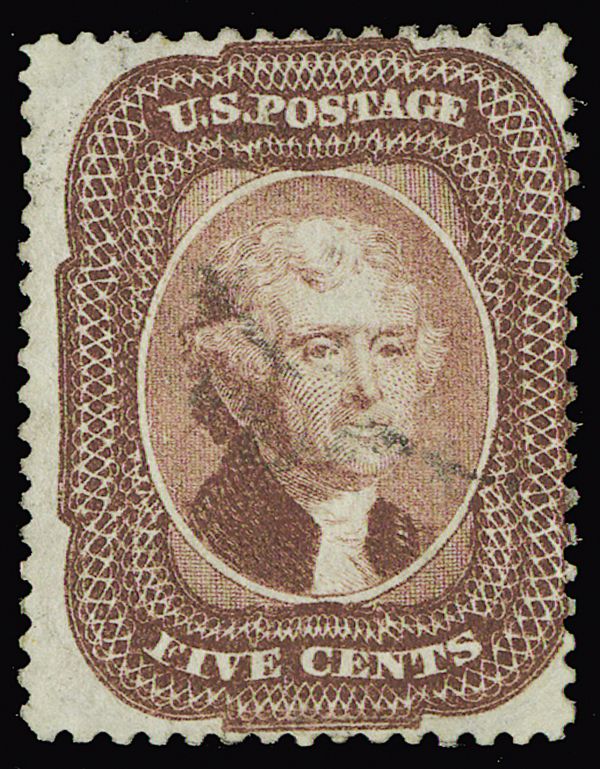 #28A, 5c Indian red, Ty. I, lightly postmarked, centered to the right with perfs just into design, rich warm color, a sound example of this scarce shade, fine.