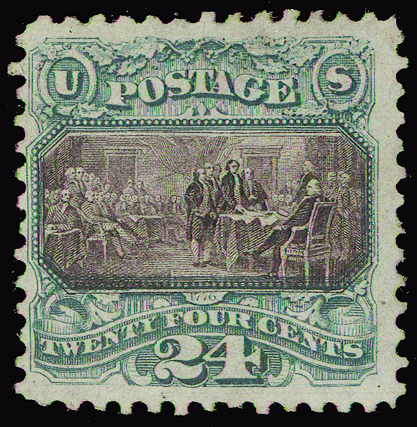 #130, 24c Green and violet re-issue, unused, detailed impression and bright color, two trivial thins and some light soiling along top margin, with 1977 P..F. certificate.