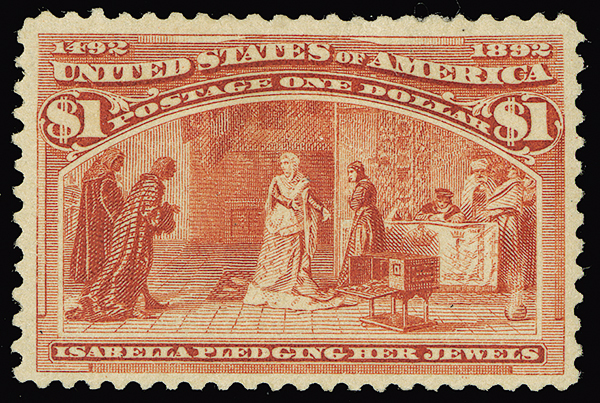 #241, $1.00 Columbian, original gum, hinged, pleasing color, fine-very fine.