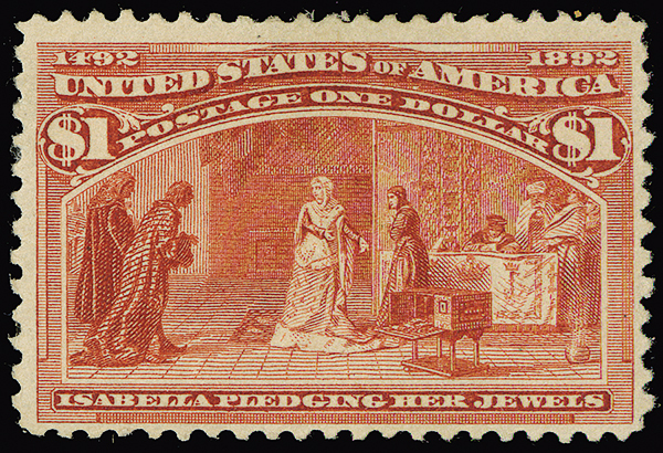 #241, $1.00 Columbian, rich fresh color, original gum, with some loss from hinge removal, a presentable example, fine.