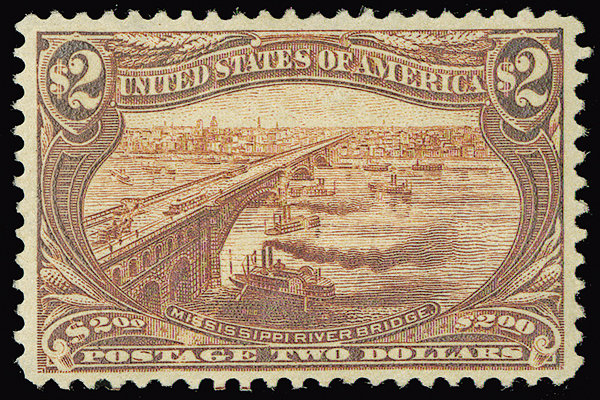 #293, $2.00 Trans-Mississippi, hinged, vivid impression, choice centering, a beautiful stamp, very fine, with 2019 P.S.E. certificate (VF80, SMQ $1,650)