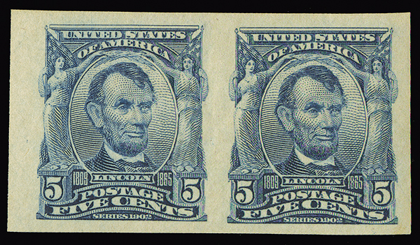 #315, 5c Blue imperforate pair, never hinged, impressive large margins, proof-like impression, an exceptional stamp, extremely fine, with 2019 P.S.E. certificate (XF 90)