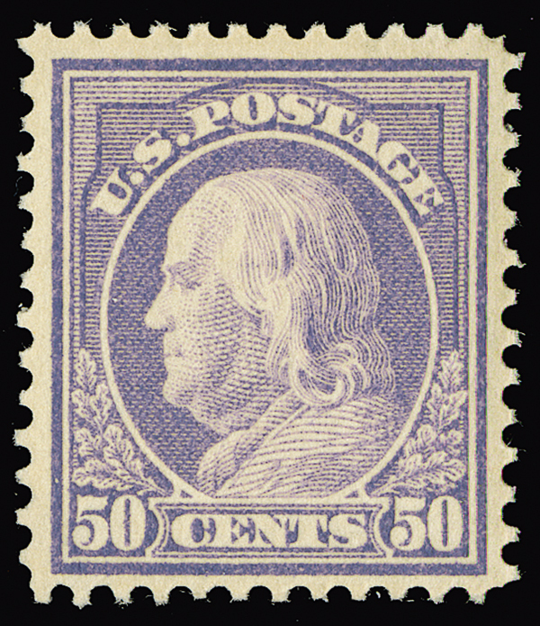 #421, 50c Violet, perf 12, very lightly hinged, pleasing shade, well-centered, very fine.