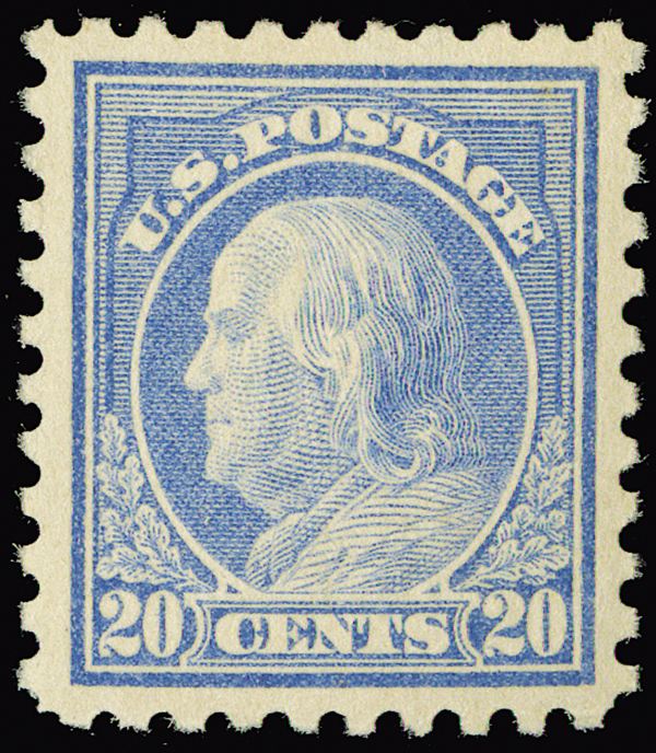 #438, 20c Ultramarine, hinged, brilliant fresh color, superior centering, a choice stamp, with 2019 P.S.E. certificate (XF-SUP 95, SMQ $500)