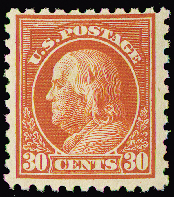 #476A, 30c Orange red, perforated 10, never hinged original gum, beautiful deep fresh color, centered towards the top, a rare stamp and a key Washington-Franklin, scarce in such choice condition, fine, with 1981 APEX certificate.