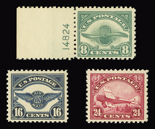 #C4-6, 8c-24c 1923 Air Posts set of three, never hinged, the 8c with left margin imprint, post-office fresh, very fine.