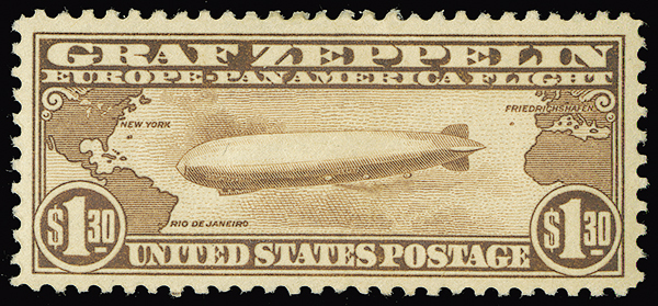 #C14, $1.30 Graf Zeppelin, select centering, warm color, hinge remnant, very fine.