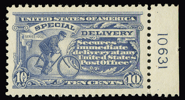#E11, 10c Ultramarine, pristine never hinged gum, lovely centering, bright shade, with plate number selvedge at right, very fine, with 2019 P.S.E. certificate (VF-XF85)