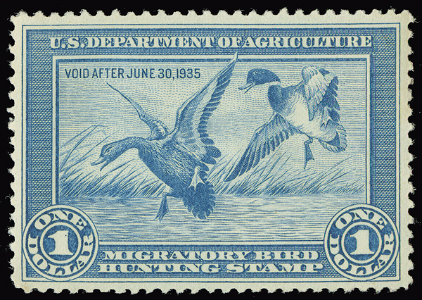 #RW1, 1934 $1.00 Blue, fresh appearance, choice centering, never hinged, very fine.