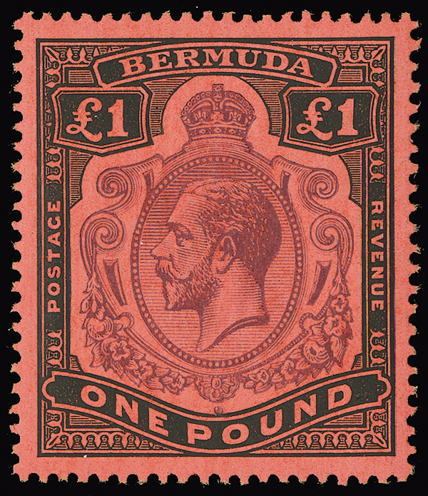 #54, 1918-22 £1 Black and violet on red, never hinged, scarce as such, razor-sharp impression on brilliant fresh paper, exceptional centering, a choice example of this key stamp, very fine. (SG #55, £325+)