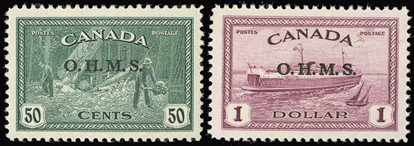 #O1-10, 1949-50 Officials overprinted O.H.M.S., a select set, uniformly bright colors on fresh paper, nicely-centered, very fine. (Unitrade C$540).