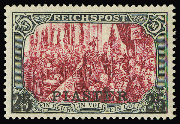 #24B, 1900 25pi on 5m slate & carmine, Type II, beautifully-centered, proof-like impression, lightly hinged, very fine.