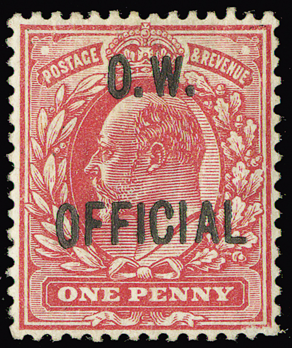 #O50, 1902 1d Carmine, "O.W./OFFICIAL" overprint, lightly hinged, superbly-centered, bright fresh color, very fine. (S.G. #O37, £575)