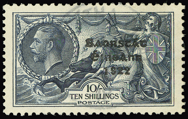 #95, 1935, 10/- Dark blue, Waterlow printing beautiful deep shade, neatly-struck c.d.s. postmark, a choice example, very fine. (S.G. #101; £300).