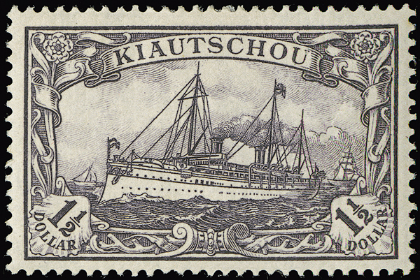 #31, 1905 $1&1/2 Black violet, 26x17 holes, intense deep color, wonderfully-centered amidst balanced margins, hinged, scarce and very fine.
