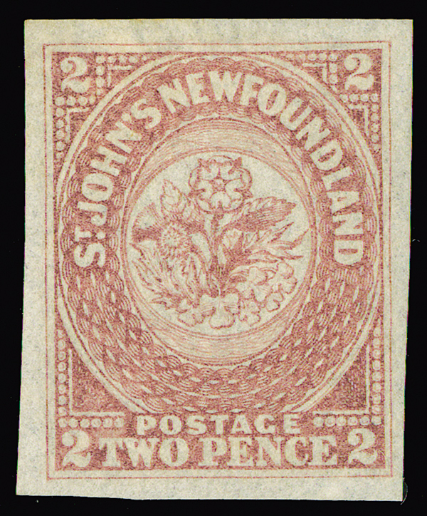 #17, 1861-2 2d Rose Heraldic, four exceptionally large margins, bright fresh color, lightly hinged, a wonderful stamp, very fine. (Unitrade C$200)