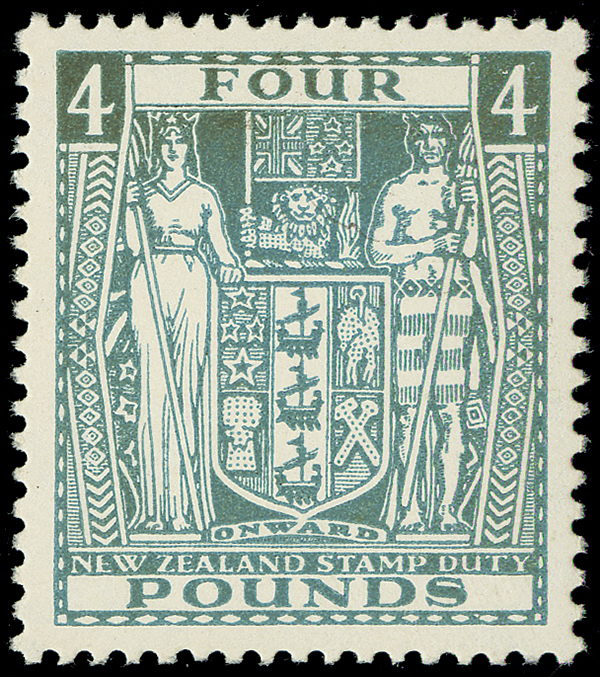 #AR67, 1931-40 £4 light blue Arms, gorgeous fresh color on brilliant white paper, hinged, extremely fine. (S.G. #F166, £550).