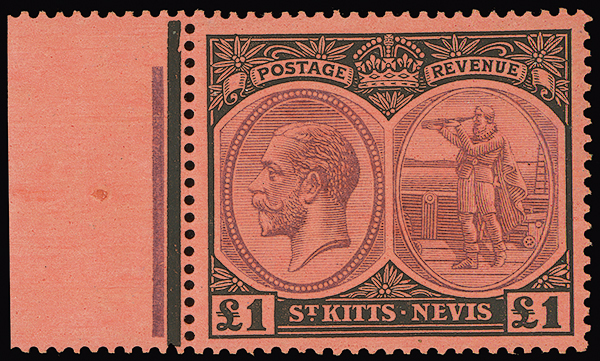 #36, 1920-22 £1 Black and violet on red, pristine never hinged gum, scarce as such, beautiful bright color, very fine. (S.G. #36, £300+)