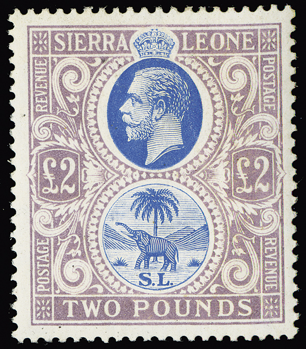#138, 1921 £2 Violet and ultramarine, extremely lightly hinged, pleasing pastel-like shade, fresh paper, well-centered, very fine. (S.G. #129, £950)