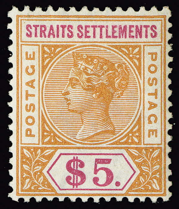 #88, 1898 $5 Orange & carmine, lightly hinged, fresh color, well-centered, very fine. (S.G. #105, £425)