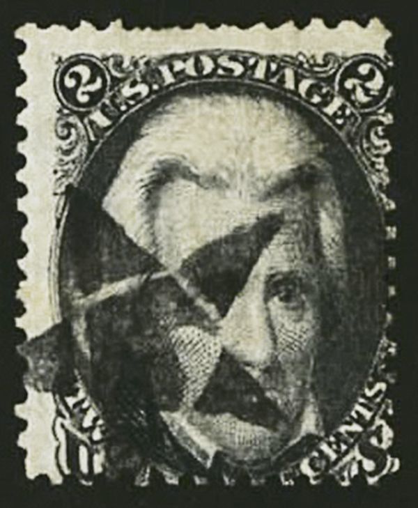 Five-Point Star, Type 3 (Rohloff S-3), near-complete strike on 2c Black, stamp centered to lower right, a few shorter perfs at top, rare, a very fine impression of this attractive fancy cancel