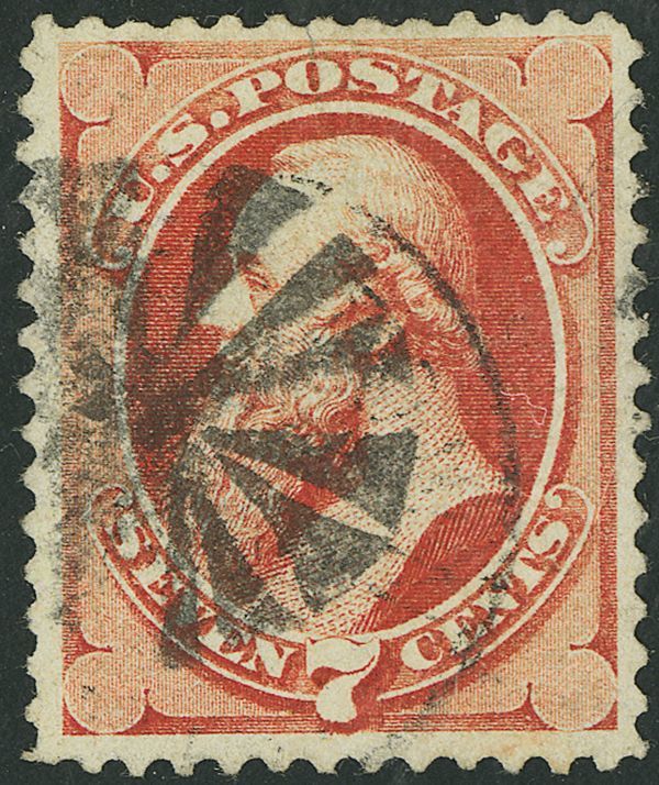 1871 7c Vermilion, Split "H" Grill, used with "Circle of Vs" fancy cancel, well-centered, tiny tear above "O" of "Postage", an attractive example, fine appearance; with 2020 P.F. certificate. (Sc. 138var)