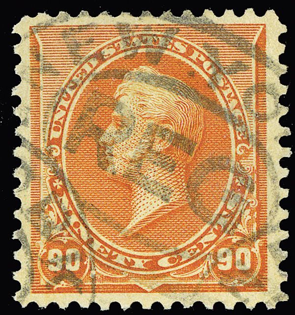 1890 90c Orange, neatly-struck New York registered handstamp, select centering, fresh, and very fine. (Sc. 229, $140)