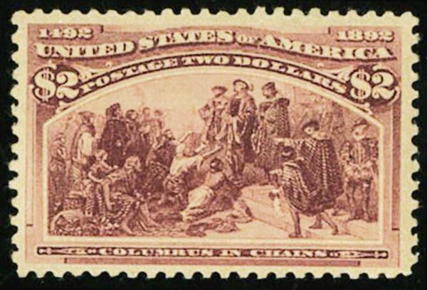 1893 $2.00 Columbian, lightly hinged, fresh deep color, beautifully-centered, a couple extremely light gum creases not detracting from the appearance of this attractive stamp, very fine; with 2015 P.S.E. certificate. (Sc. 242, $1,050)