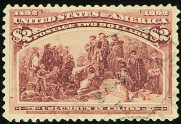 1893 $2.00 Columbian, lightly-struck oval registry cancel, choice centering, pleasing shade, very fine; with 1988 P.F. certificate. (Sc 242, $525)