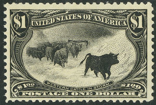 1898 $1.00 Trans-Mississippi, hinge remnant, wonderful detailed impression and deep color, reperforated at left, fine-very fine appearance; with 2020 P.F. certificate. (Sc. 292, $1,500)