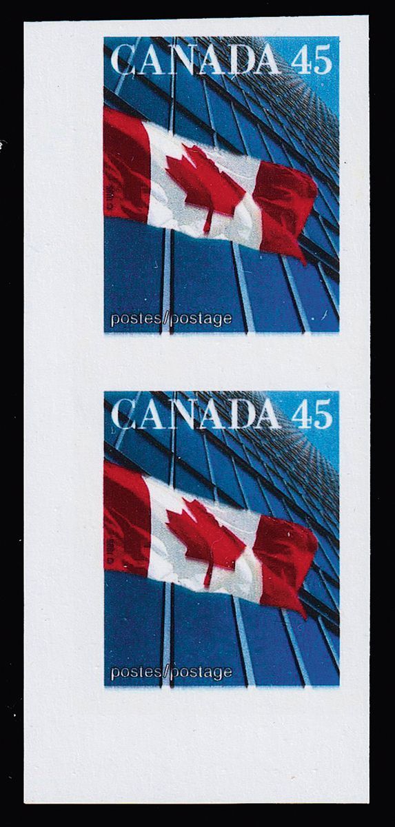 1998 45c Flag imperforate pair, never hinged, scarce and very fine. (Unitrade #1362c, C$750)
