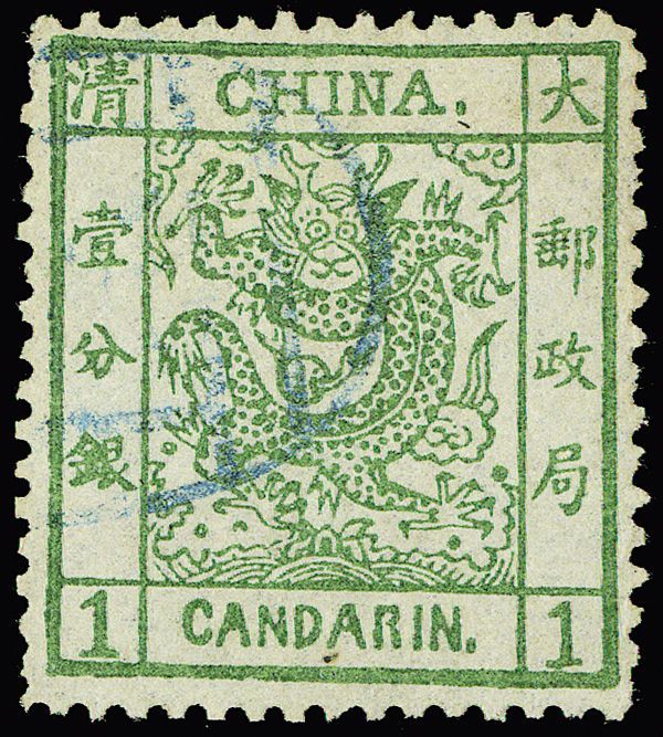 1878 1ca Large Dragon on thin paper, neatly-struck blue postmark, choice centering, very fine. (Sc. 1, $550)