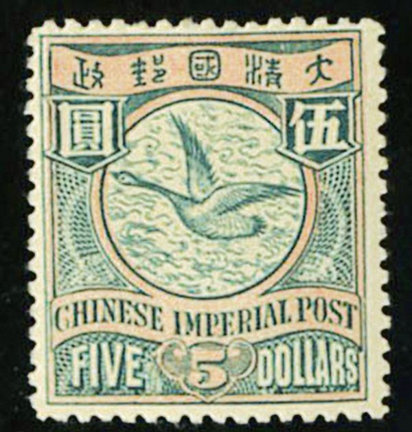 1900-06 $5.00 Deep Green & Salmon, hinged, large part original gum, select centering, bright colors, fresh and very fine. (Sc. 122, $600)