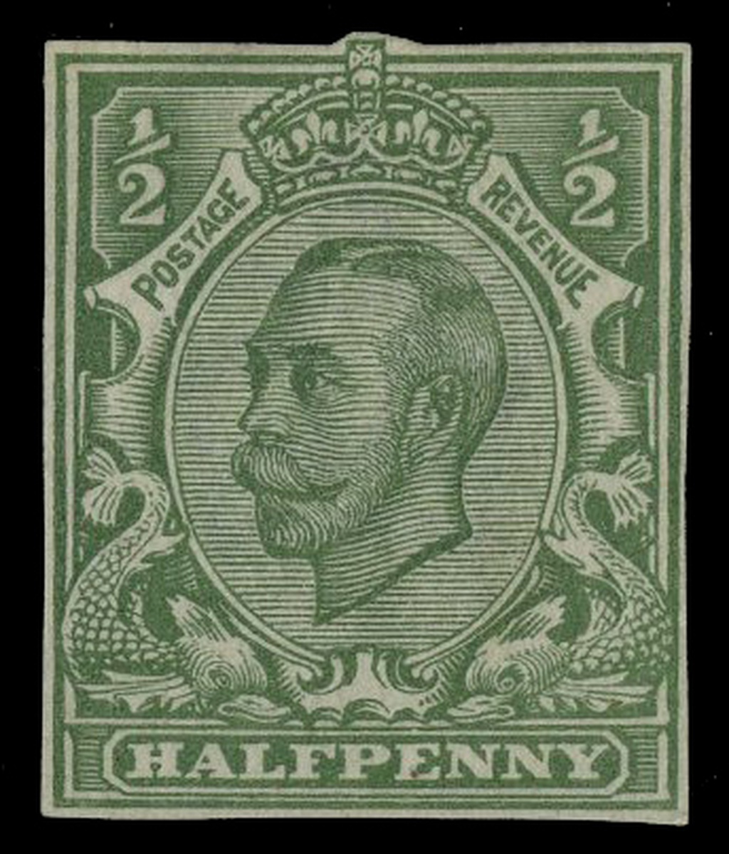 1911-12, Die 2 Proof 1/2d Bluish green trial color,