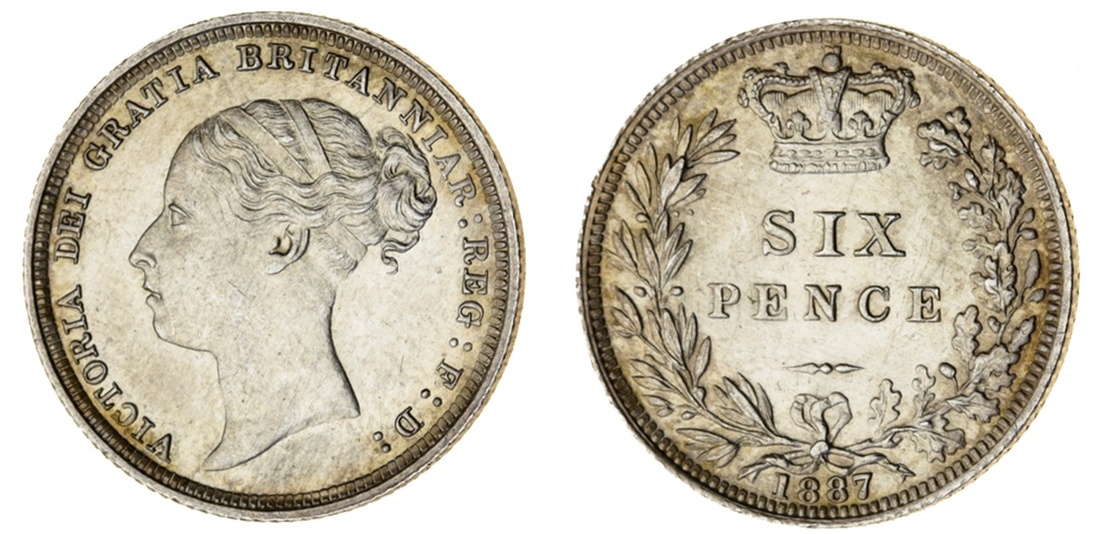 Victoria (1837-1901), Sixpence, 1887, third young head left, rev. crowned mark of value within wreath, date below (S.3912), brilliant mint state, about uncirculated