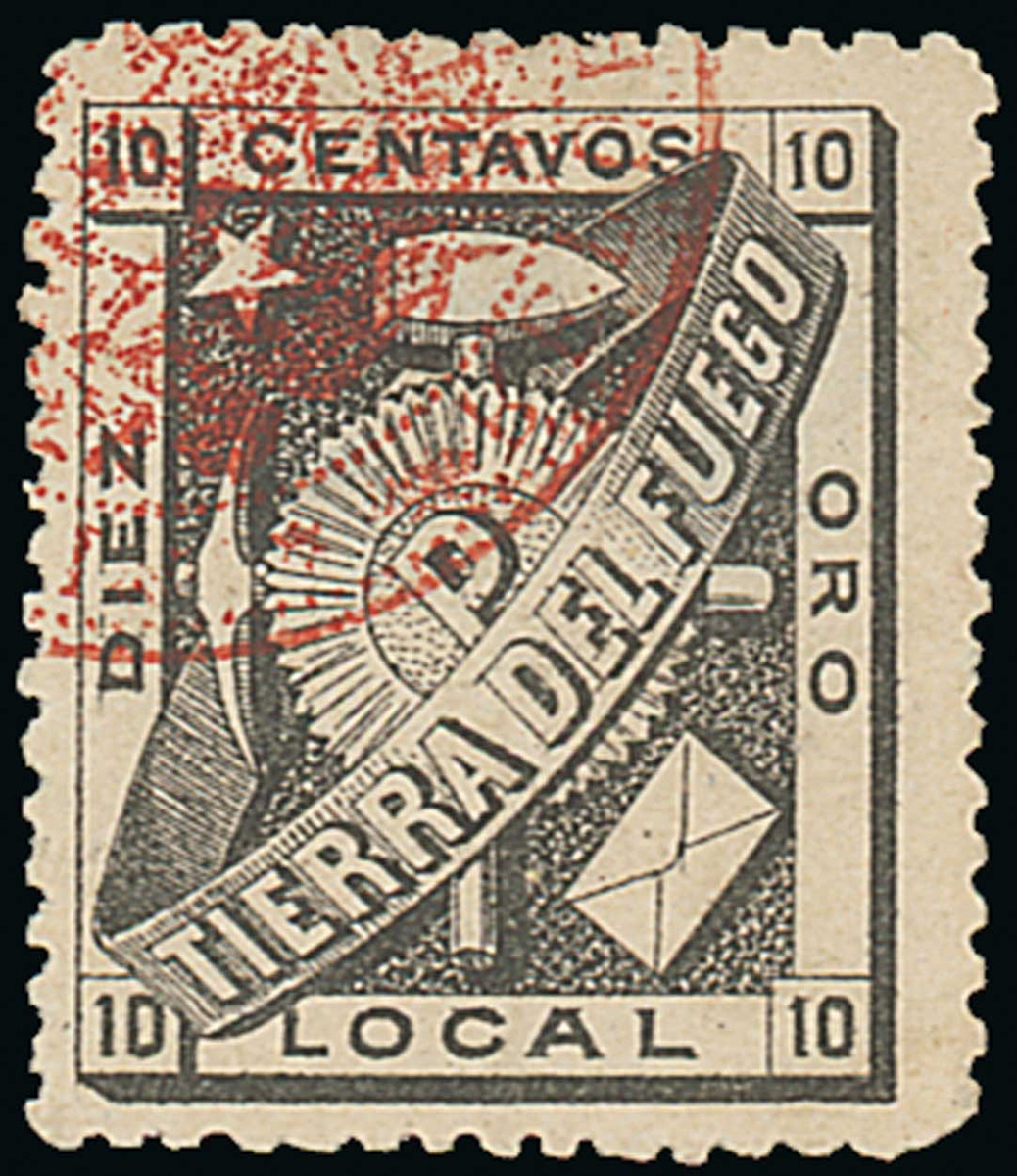 1891 "Poppers Post" 10c. perforated proof in black (type F) with the usual red printers cancellation, small thin, the issued stamp with the eight transfer types, and a complete sheet of 100 (10x10), mint (portions of selvedge missing at top). Fine. S.G. 1. Photo for proof