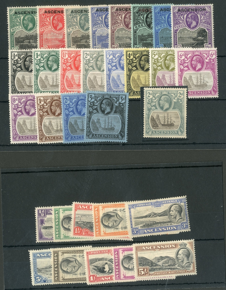 1922 on St. Helena set less 1d., 1924-33 set with additional 2d. with cleft in rock (two surface marks) and 1934 set; good to fine mint. Cat. £1,000+